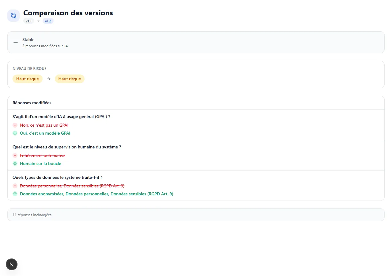 Suchen Sie nicht mehr blind nach Änderungen. Der Versionsvergleich von AiActo zeigt jede Änderung farblich hervorgehoben, Feld für Feld, für eine schnelle Überprüfung und vollständige Kontrolle.